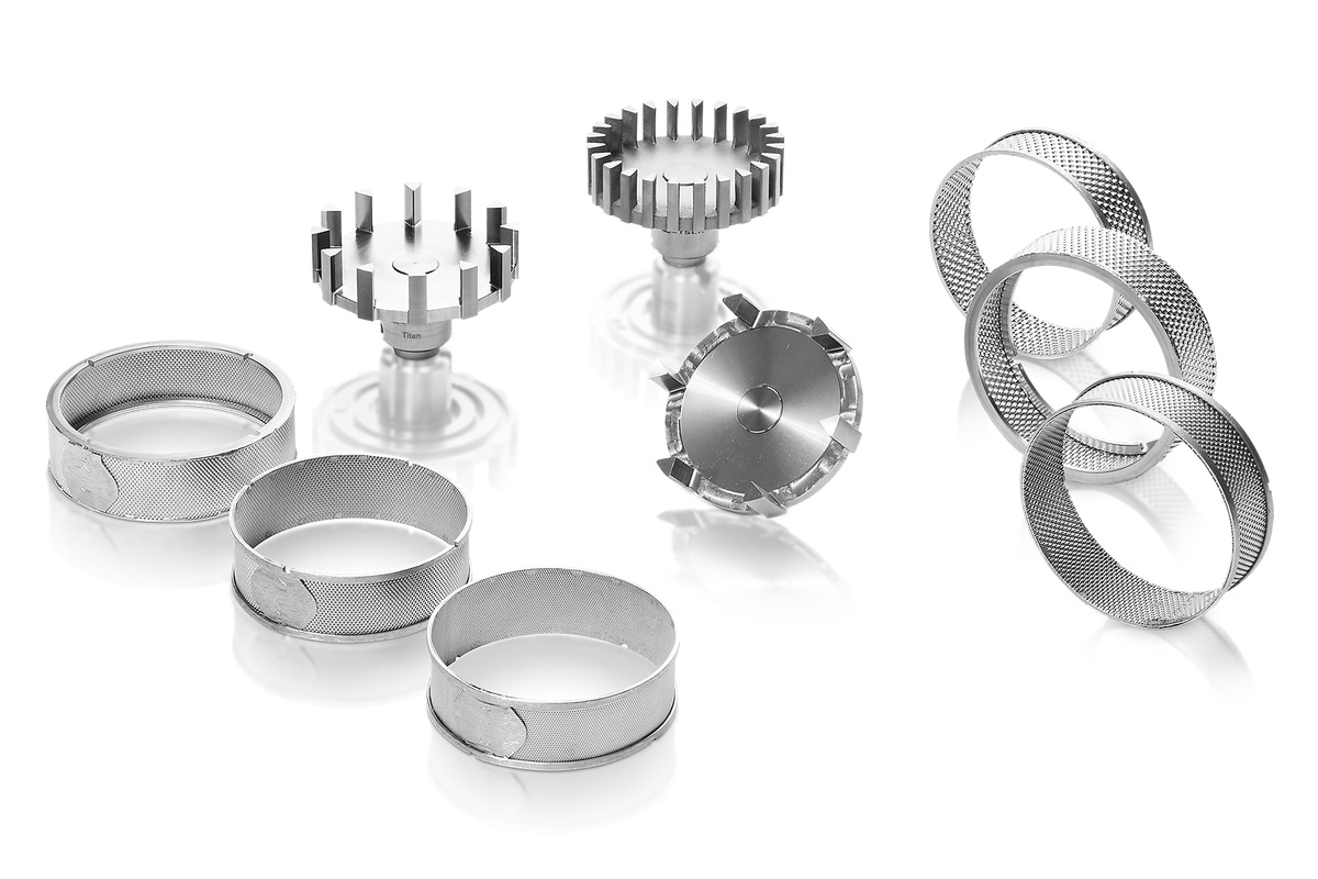 Al ser todos los rotores y tamices de diseño insertable, la limpieza del aparato se realiza de manera sumamente fácil y rápida. Todas las partes en contacto con el material pueden limpiarse bajo el chorro de agua o en el lavavajillas.