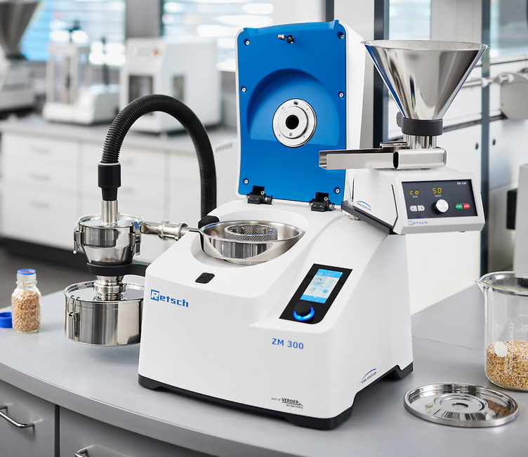 Gracias a su velocidad variable, el ZM 300 es un aparato versátil que puede adaptarse a todas las necesidades de la industria de alimentos y piensos, la industria química y la industria agrícola.