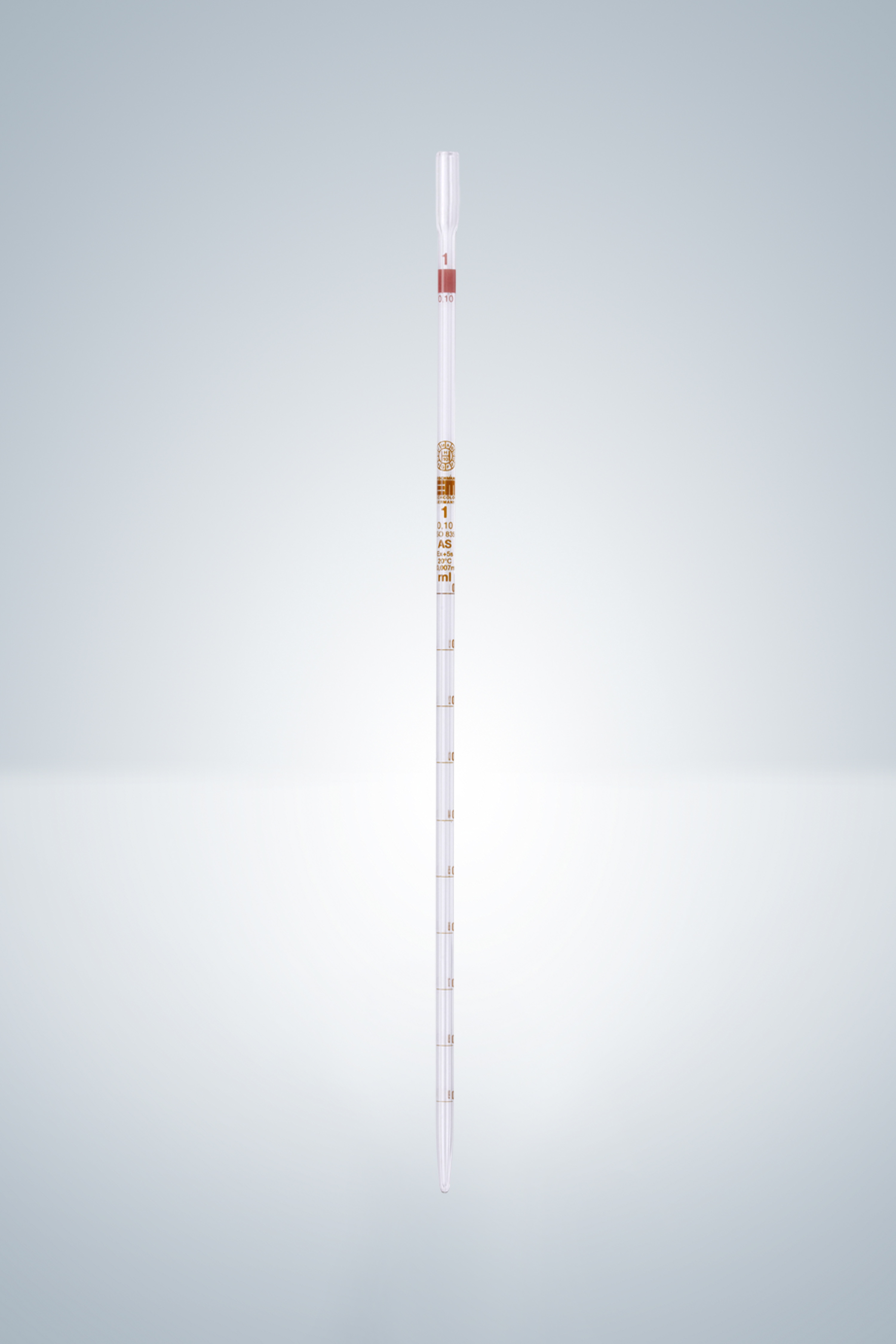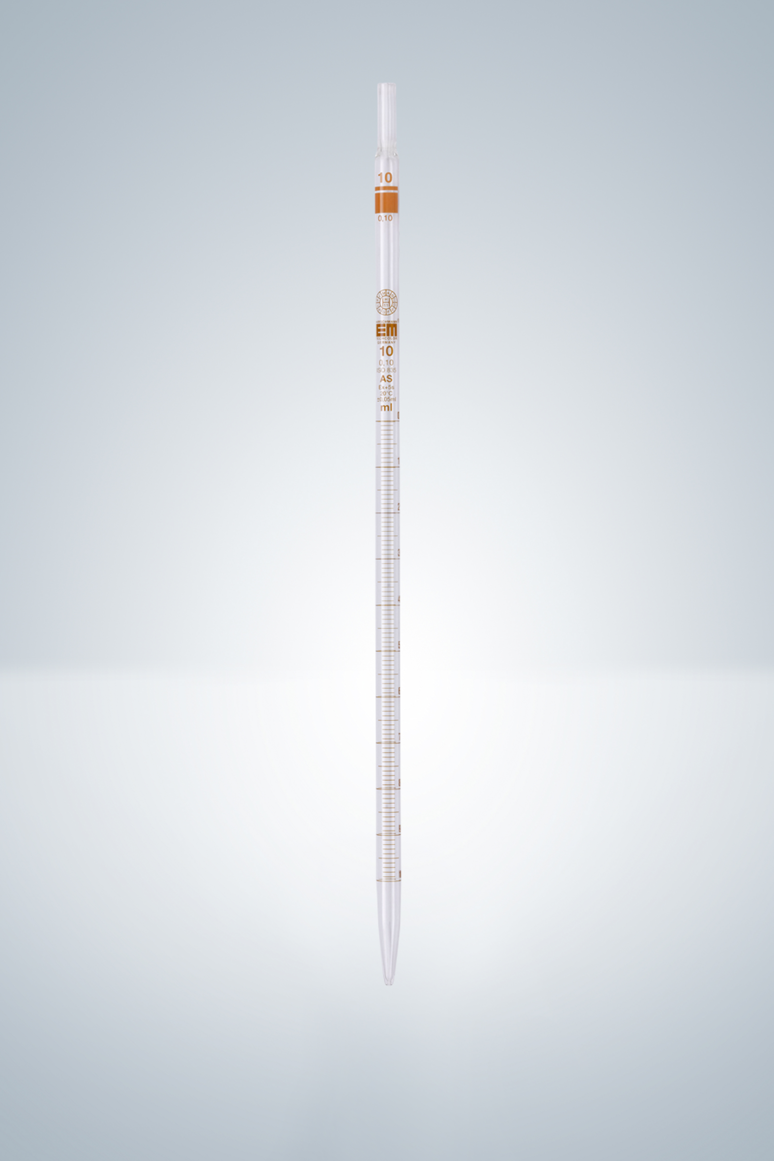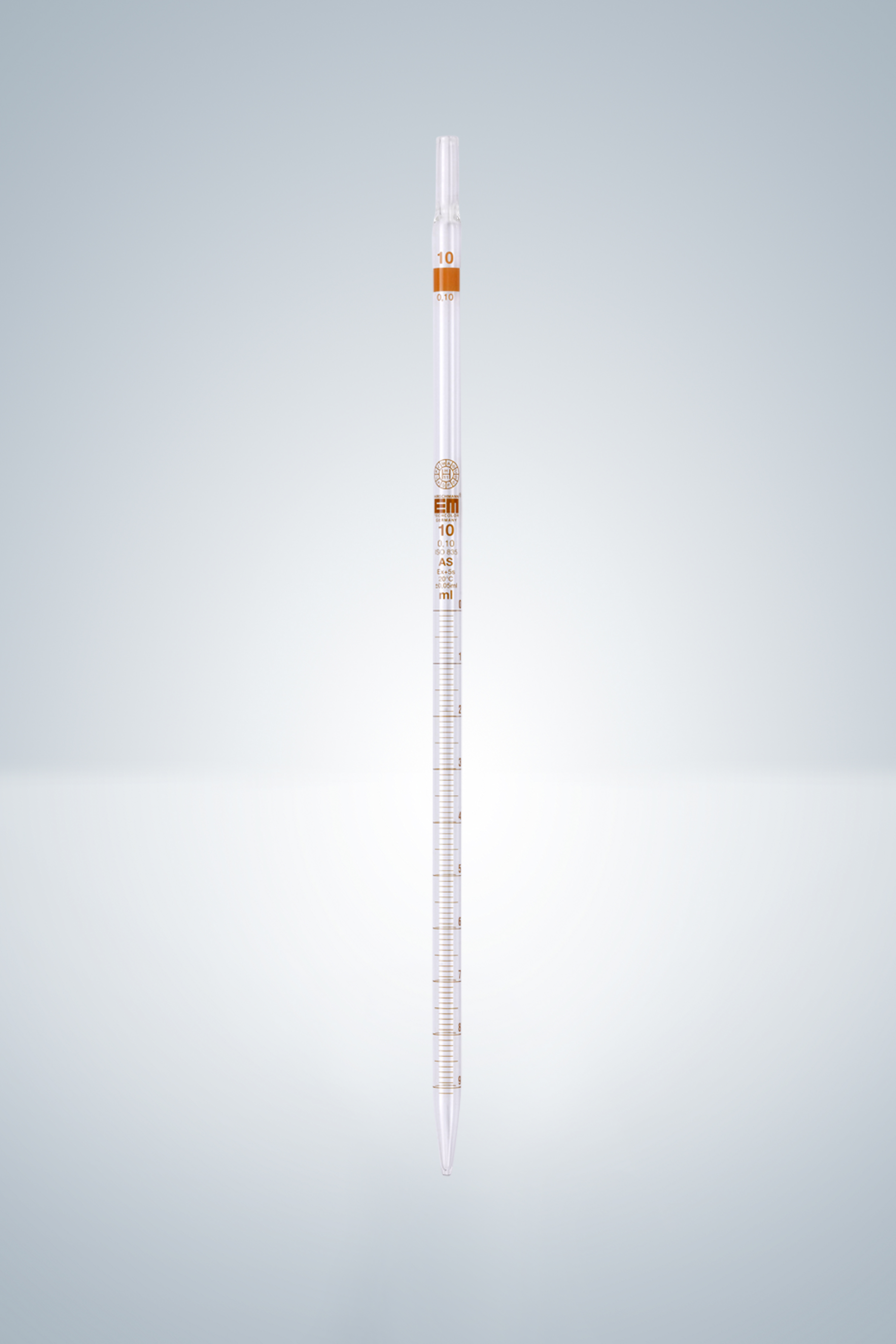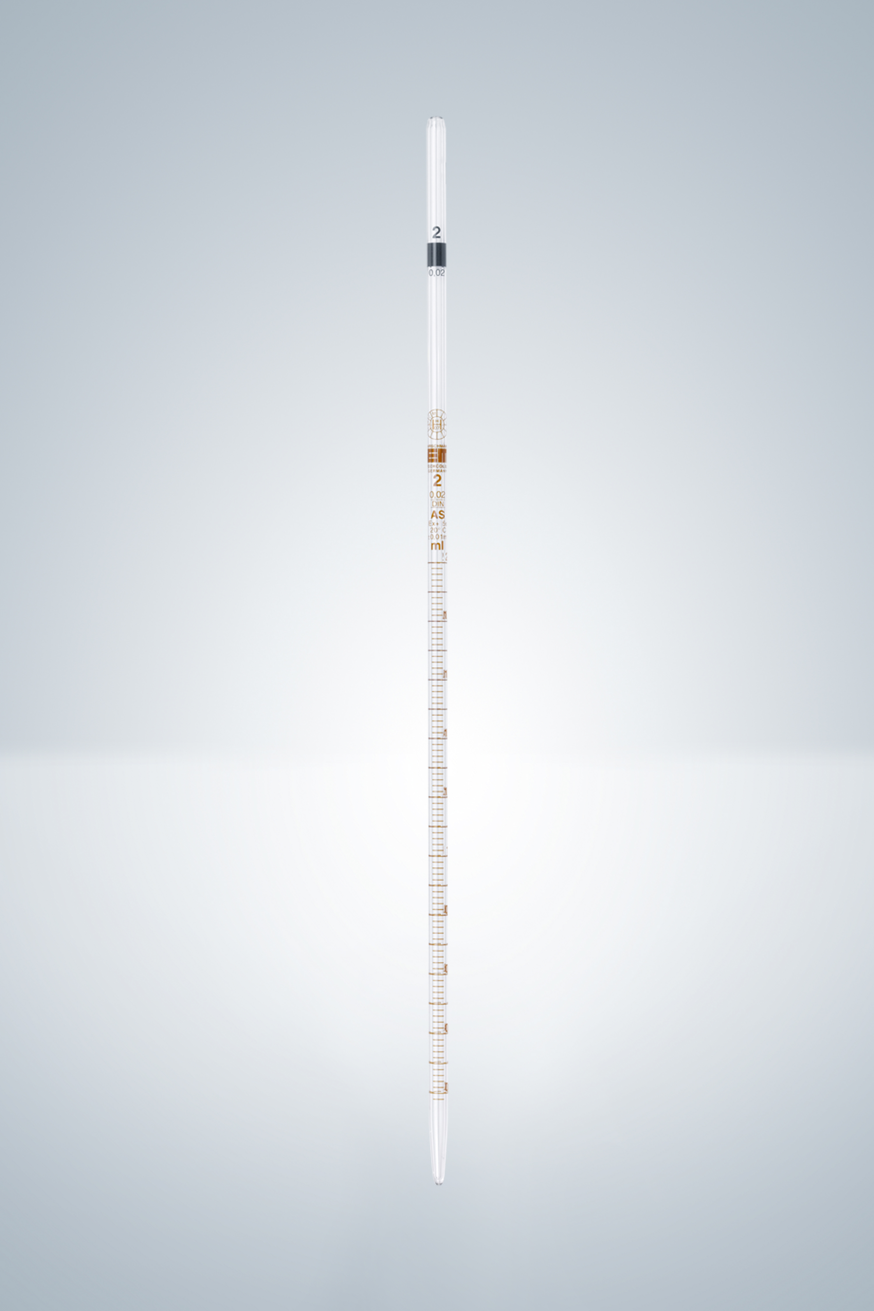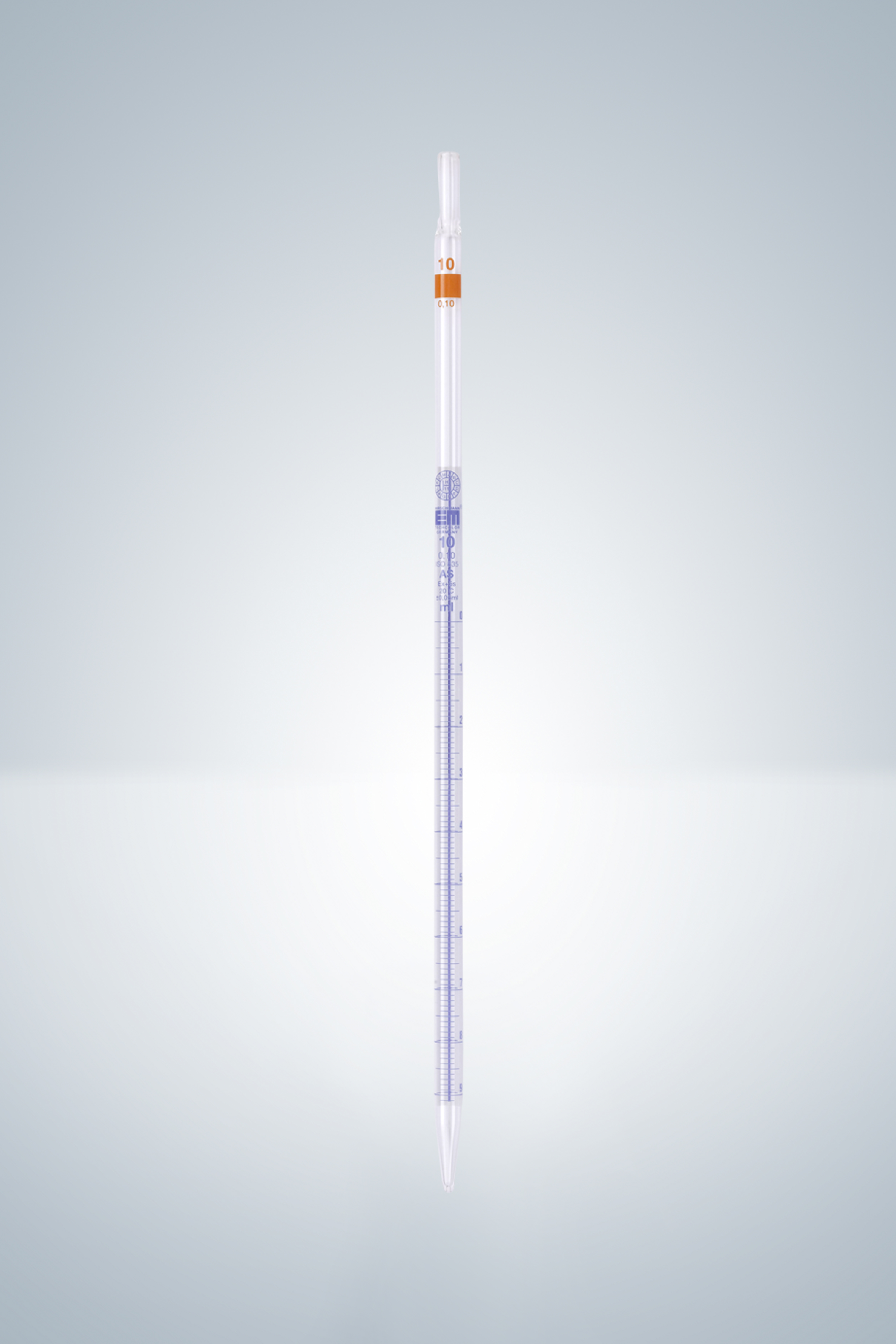 Pipeta graduada, Cl. B, graduación permanente en ámbar por difusión de plata, Vidrio sódico-cálcico.
