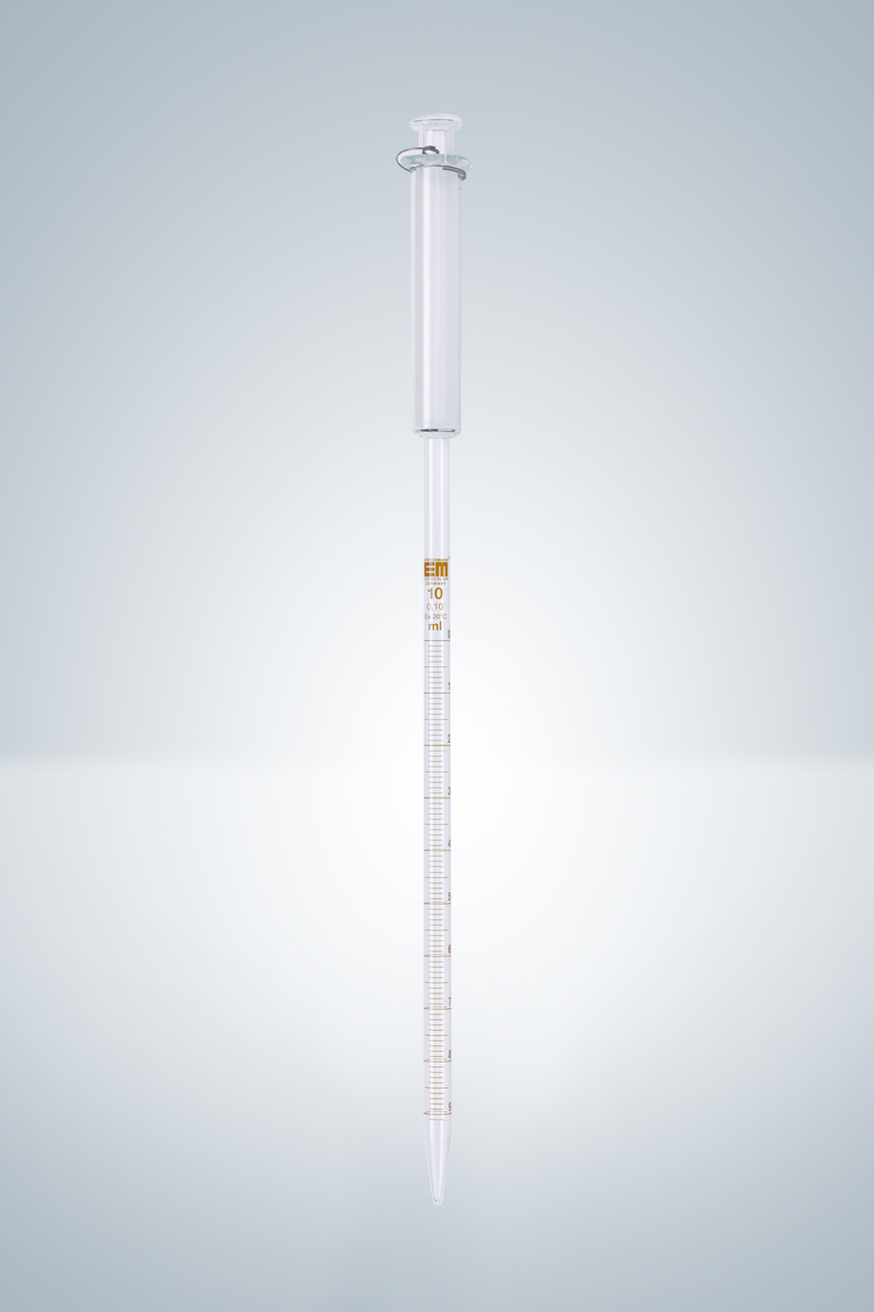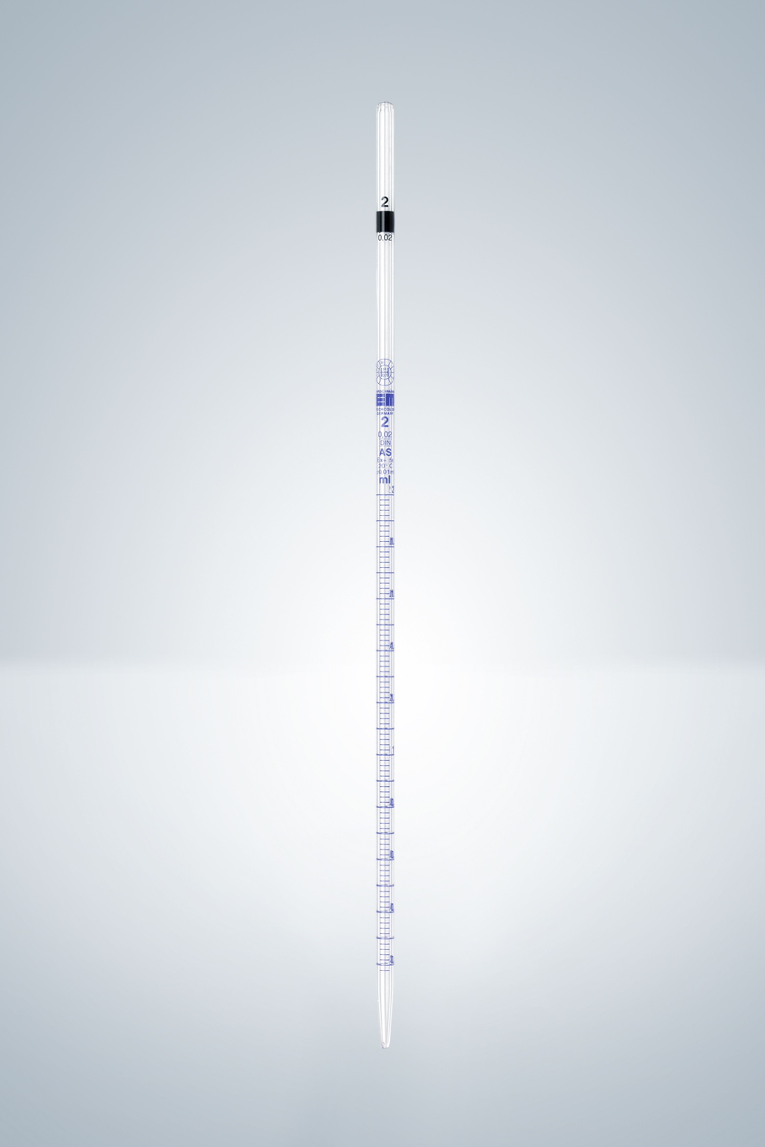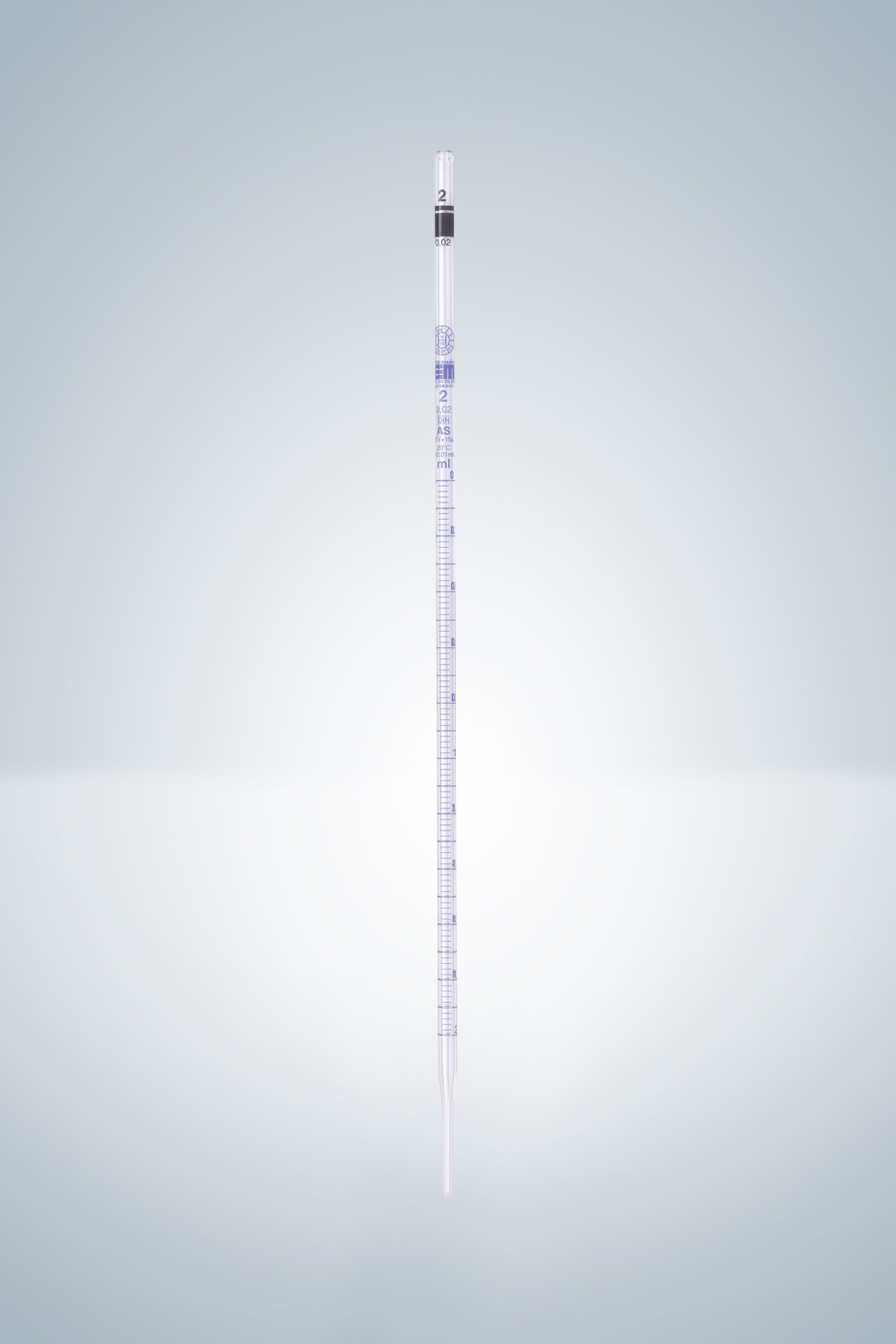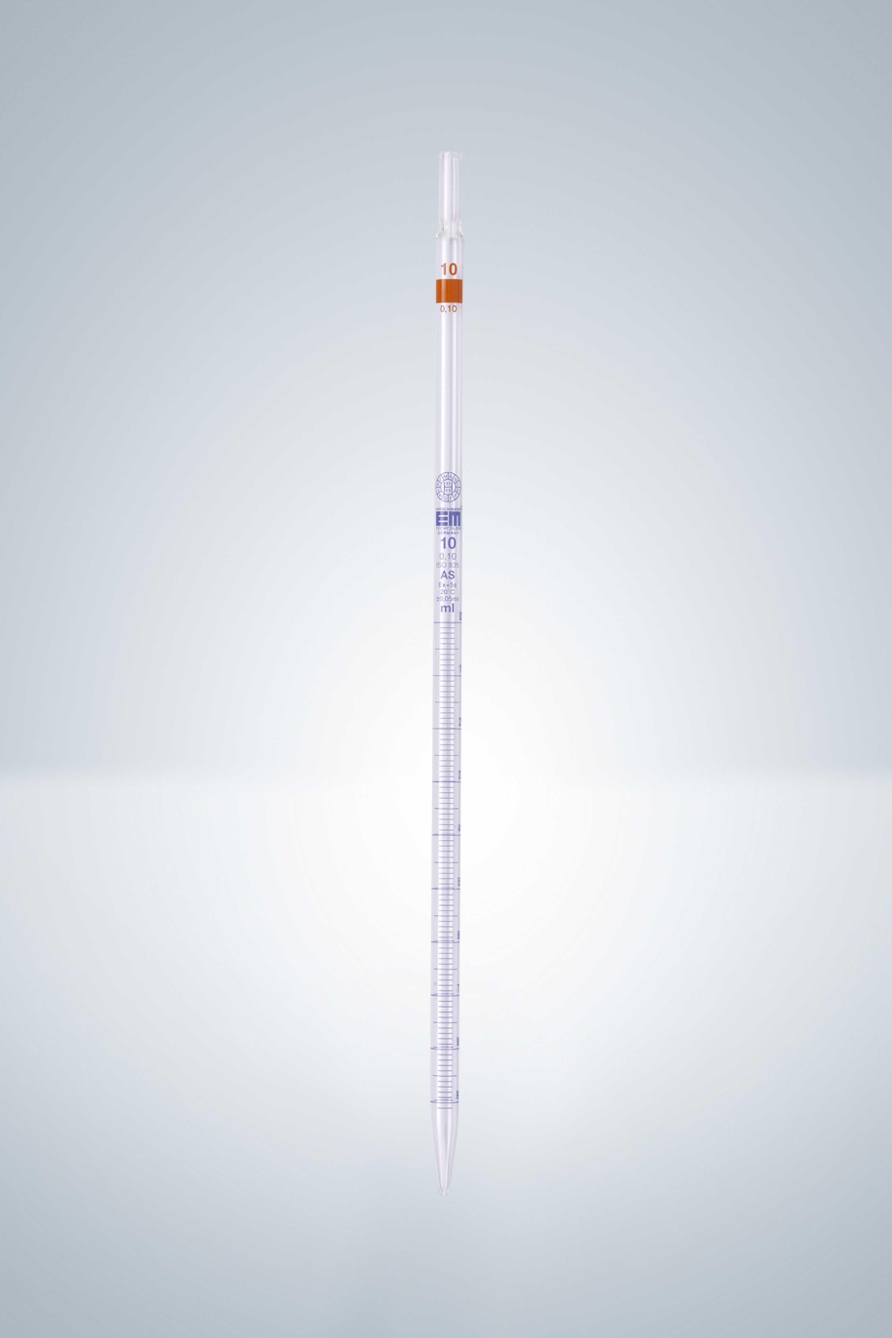 Pipeta graduada, Cl. B, graduación permanente en ámbar por difusión de plata, Vidrio sódico-cálcico.