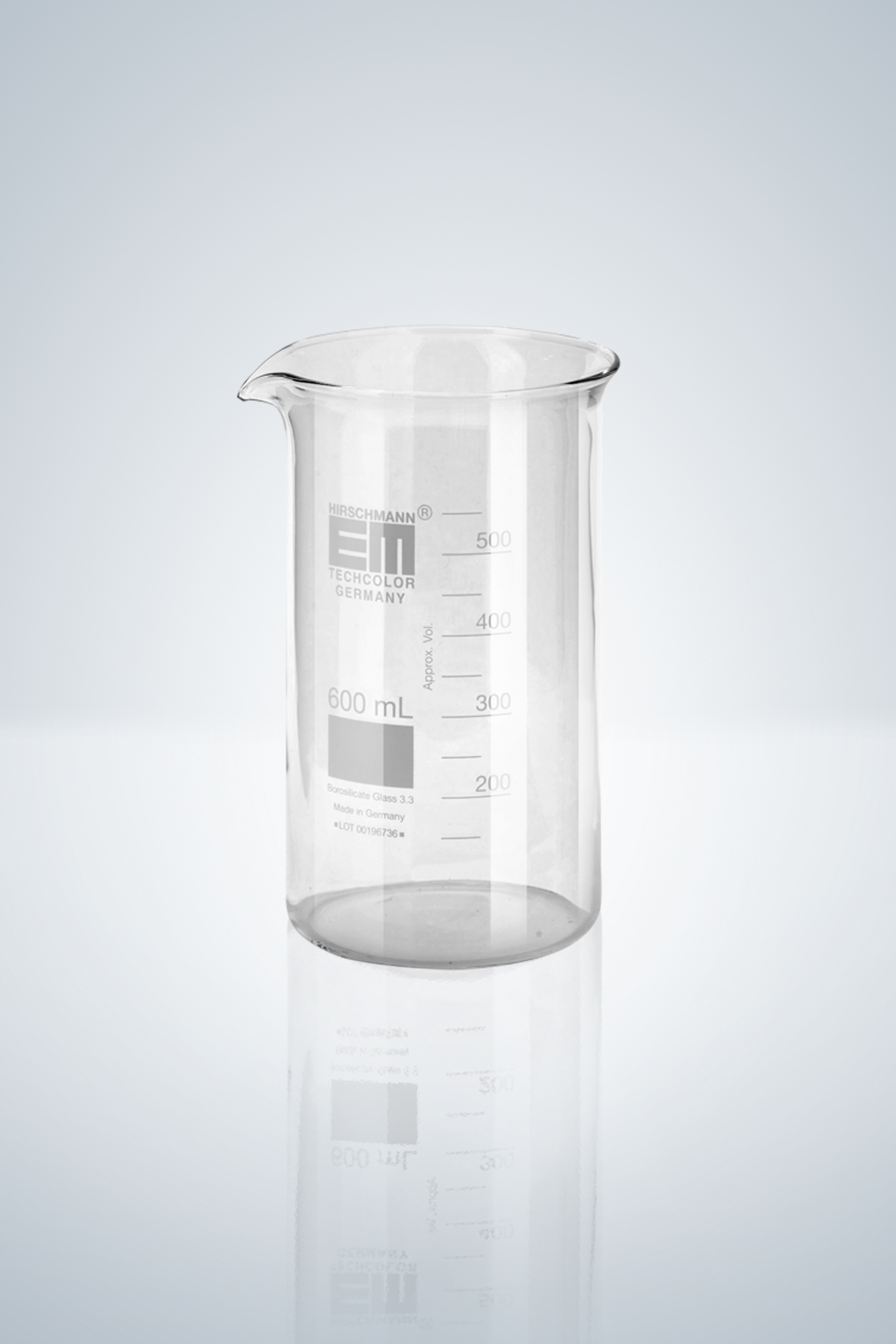 Vaso de precipitados, forma alta, graduación en blanco, 400 ml, altura 130 mm, diámetro exterior 70 mm, vidrio de borosilicato, con división y pico, DIN EN ISO 12331.